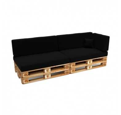 Set de 6 coussins pour palette imperméables, matelassés, 2x Siège + 2x Dossier + Latérale + Décorative, Noir